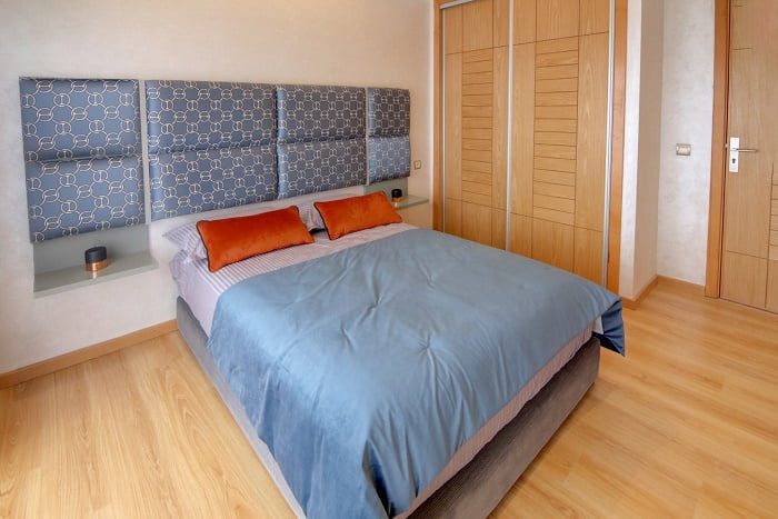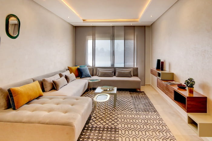 Les appartements, allant du studio au 4 pièces, sont conçus avec des matériaux de haute qualité et des finitions soignées et offre des prestations de haut standing alliant confort et luxe: Marbre Créma Marfil, Parquet stratifié dans les chambres, Cuisine équipée de trio, Peinture décorative type Khayal dans tout l’appartement Chaque unité bénéficie de vastes espaces lumineux, de balcons ou terrasses offrant une vue imprenable sur le quartier verdoyant de l’Hérmitage. entre 67 et 182 m²,