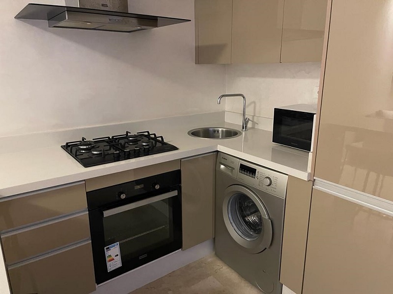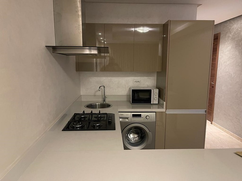Oasis-Location-Studio-Meublé-Moderne, situé sur quartier Oasis, d’une superficie de 75m proche de toutes les commodités, se trouvant au deuxième étage, comprenant un salon européen en L avec coin télévision donnant sur un balcon, une cuisine américaine attenante entièrement équipé, chambre à coucher avec placards, une salle de bain avec douche à l‘italienne, et une place au parking