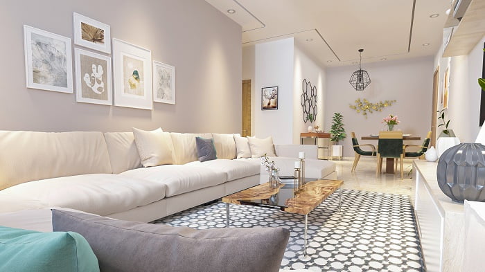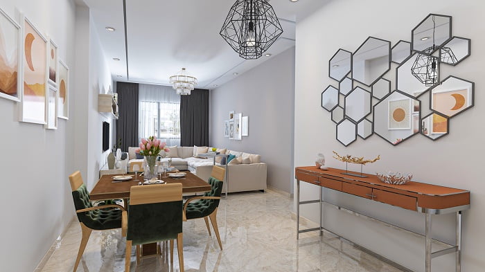 – Marbre dans le salon et hall de l’appartement