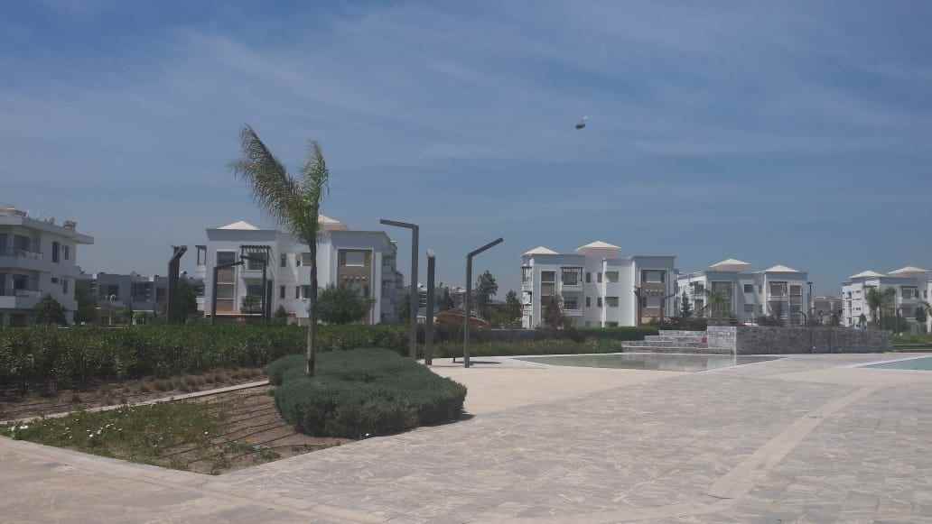 Vente-appartement en rez-de-jardin sur Bouskoura ville verte , dans une résidence sécurisée se trouvant en rez-de-jardin dans le calme , bien orienté et ensoleillé , un vrai havre de paix d’une superficie de 157m² dont 12m² de terrasse, 9m² de parking et 8m² de boxe, comprenant un hall, un double salon avec coin cheminée donnant sur une belle terrasse, salle d’eau invités, une cuisine entièrement équipée, deux chambres pour enfants avec placards donnant sur un jardin non titrée mais appartenant à l’appartement, salle de bain avec cabine douche à l’italienne, et une suite parentale dont dressing et salle de bain avec baignoire, deux places au parking, l’appartement est équipé d’une très bonne finition et des matériaux de bonne qualité, climatisation centrale, etc…. Dans une résidence dotée de plusieurs piscines et des aires de jeux extérieurs