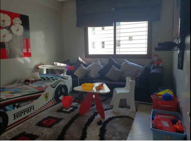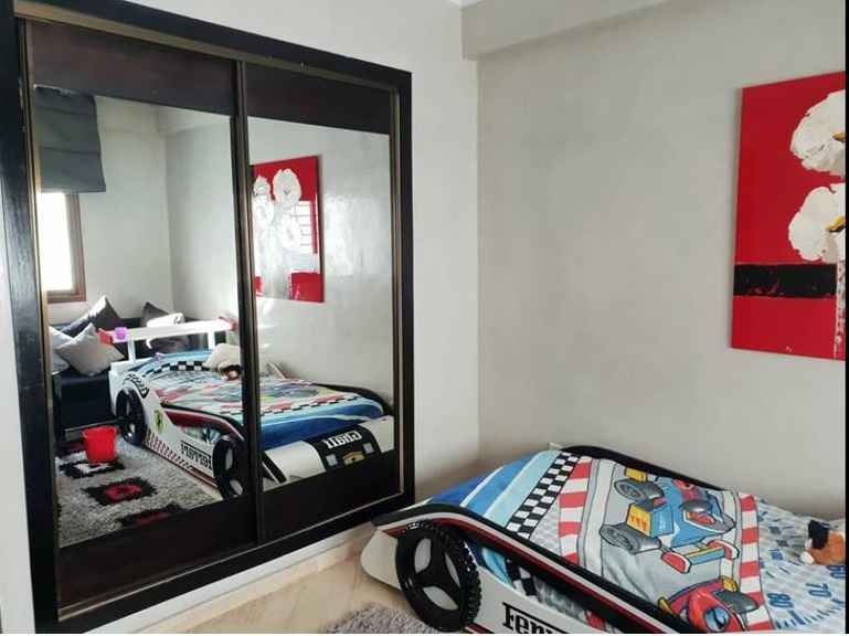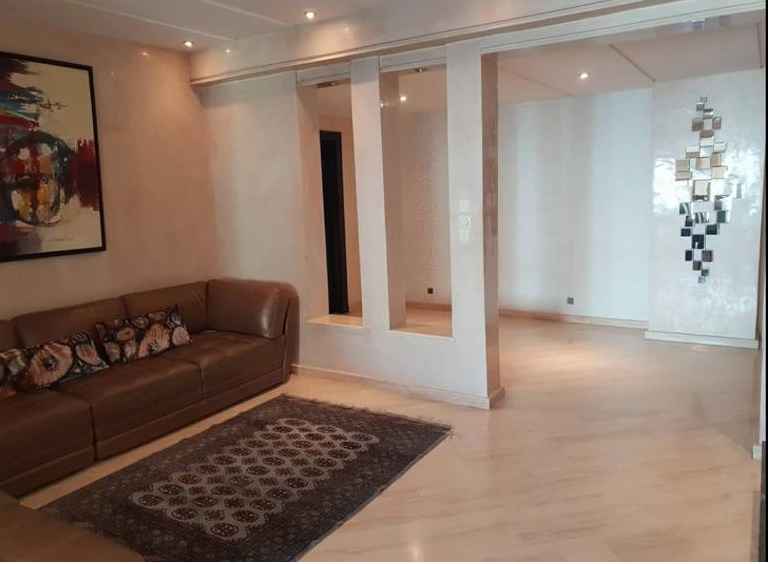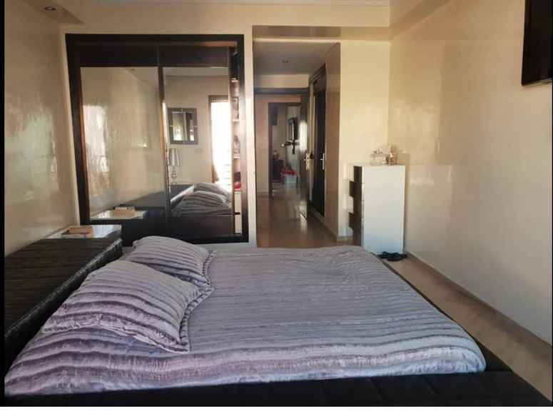 Vente-Appartement-Sur-Palmier de haut standing, , résidence sécurisée récente et moderne, d’une superficie de 148m², se trouvant au cinquième étage, comprenant un double salon, salle d’eau invités, cuisine équipée, suite parentale dont salle de bain avec baignoire et dressing, deux chambres pour enfants avec placards, salle de bain avec cabine douche, un balcon, et une place au parking,