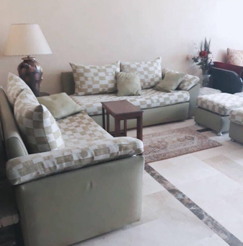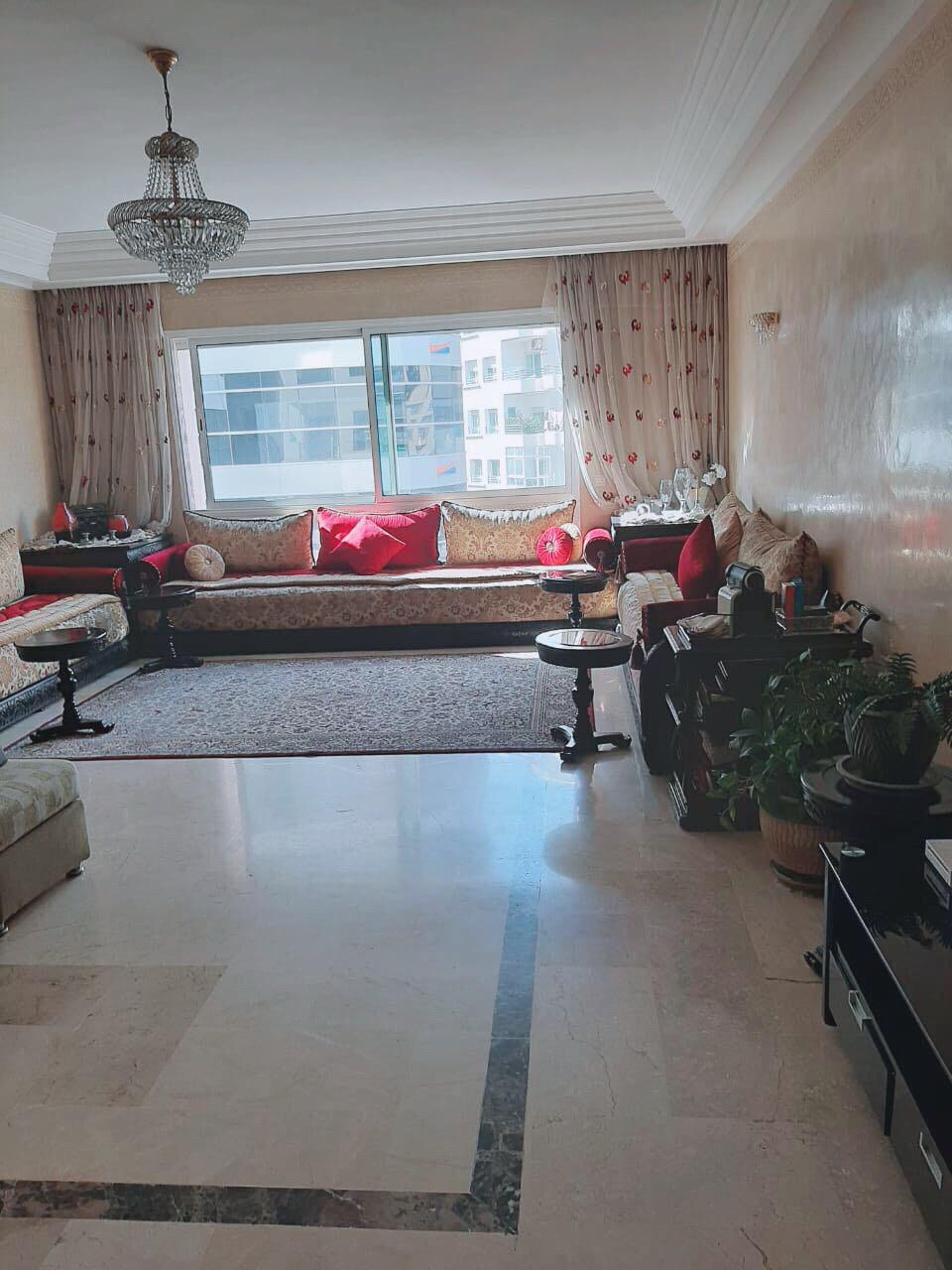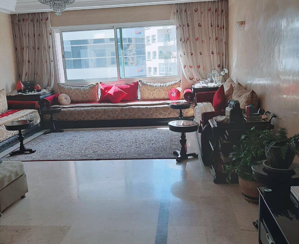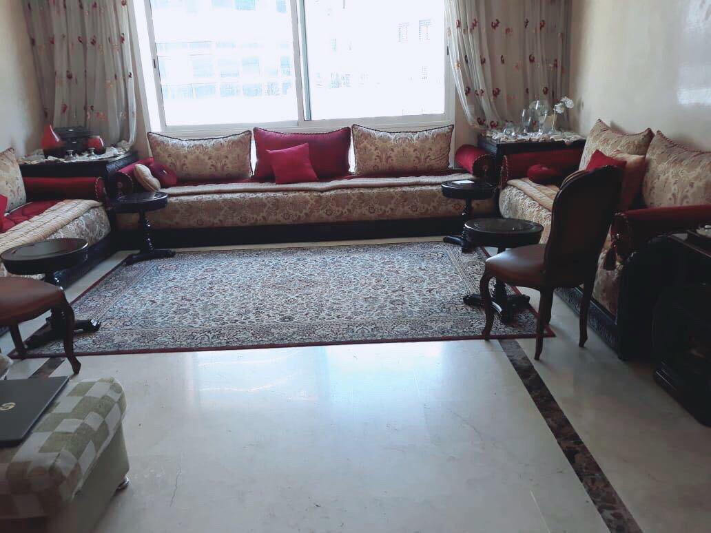 Vente Bel Appartement-Quartier-Palmier à la proximité de toutes les commodités et écoles d’une superficie de 203m², comprenant un double salon avec coin cheminée, salle d’eau invités, cuisine très spacieuse équipé avec espace salle à manger, chambre parentale dont placards et salle de bain avec baignoire, deux chambres avec placards donnant sur une terrasse, salle de bain avec douche, deux autres terrasses, et deux places au parking
