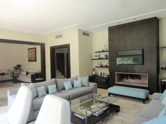 Immobilier au Maroc, VENTE-MAGNIFIQUE-VILLA-SUR-DAR BOUAZZA , sise dans une résidence sécurisée , cette villa de maître est d’une superficie de 804m² de terrain et de 450m² habitable sur trois niveaux se composant d’un sous-sol avec une grande chambre ou séjour, chambre personnel, grand garage et cuisine. RDC : grand séjour, double salon avec coin cheminée donnant sur un beau jardin et une grande piscine, salle d’eau invités et cuisine équipée. Étage : grande suite parentale dont dressing et salle de bain avec baignoire et balcon, une chambre avec placards et salle de bain avec douche et deux autres chambres avec placards et salle de bain.