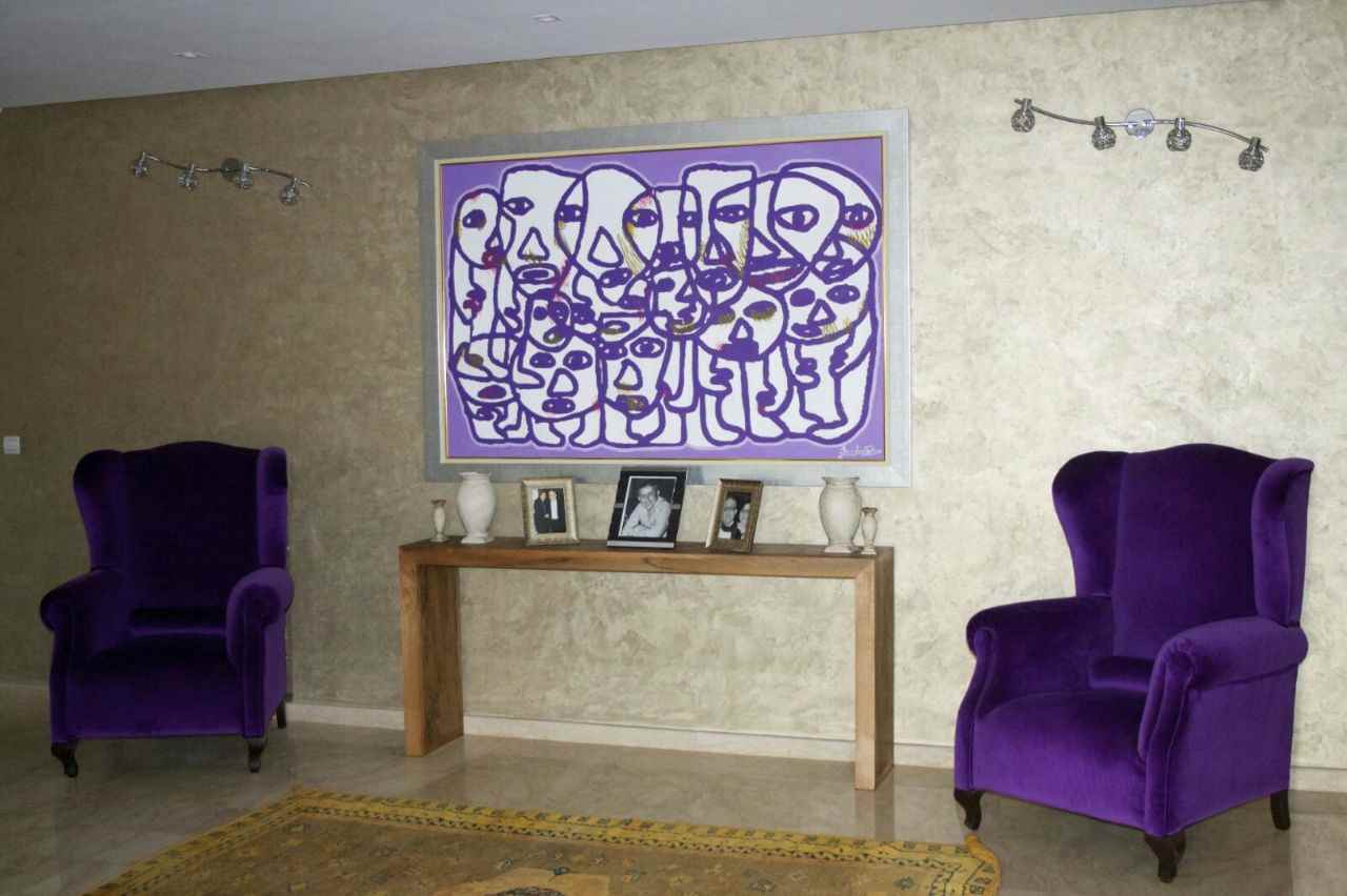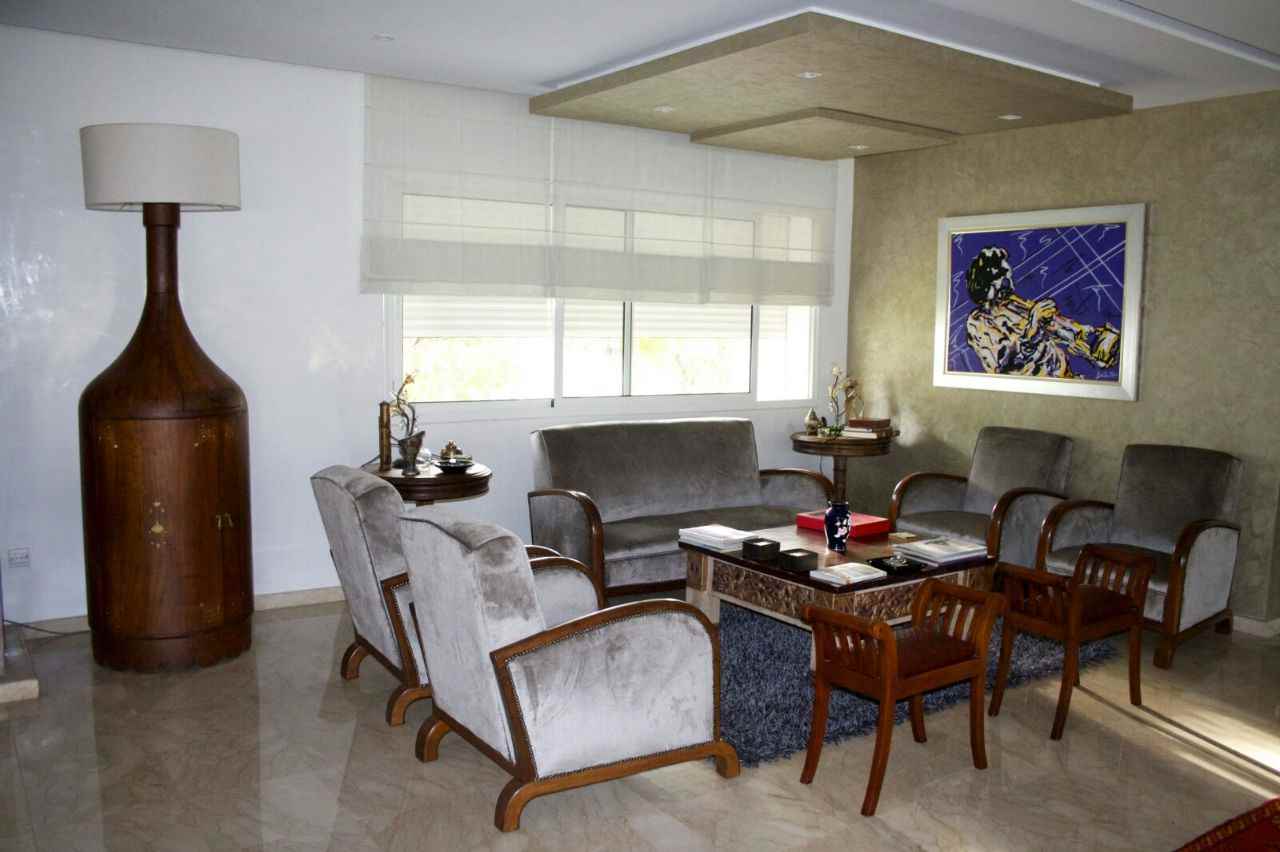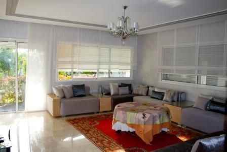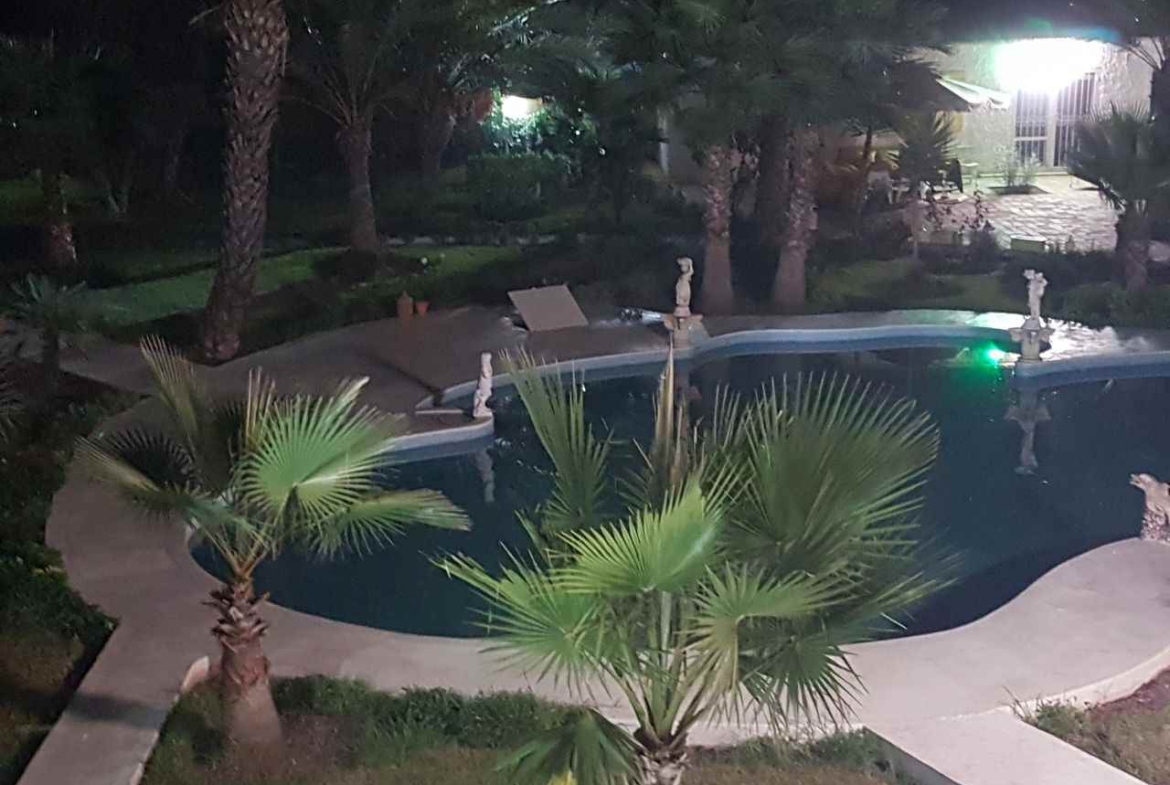 villa-de-maître-en-location-ou-vente-sur-bouskoura est doté d’un puits, raccordement a l’onep, chauffage central, toutes les chambres sont climatisés avec revêtement parquet et salons avec marbre perlatino au sol