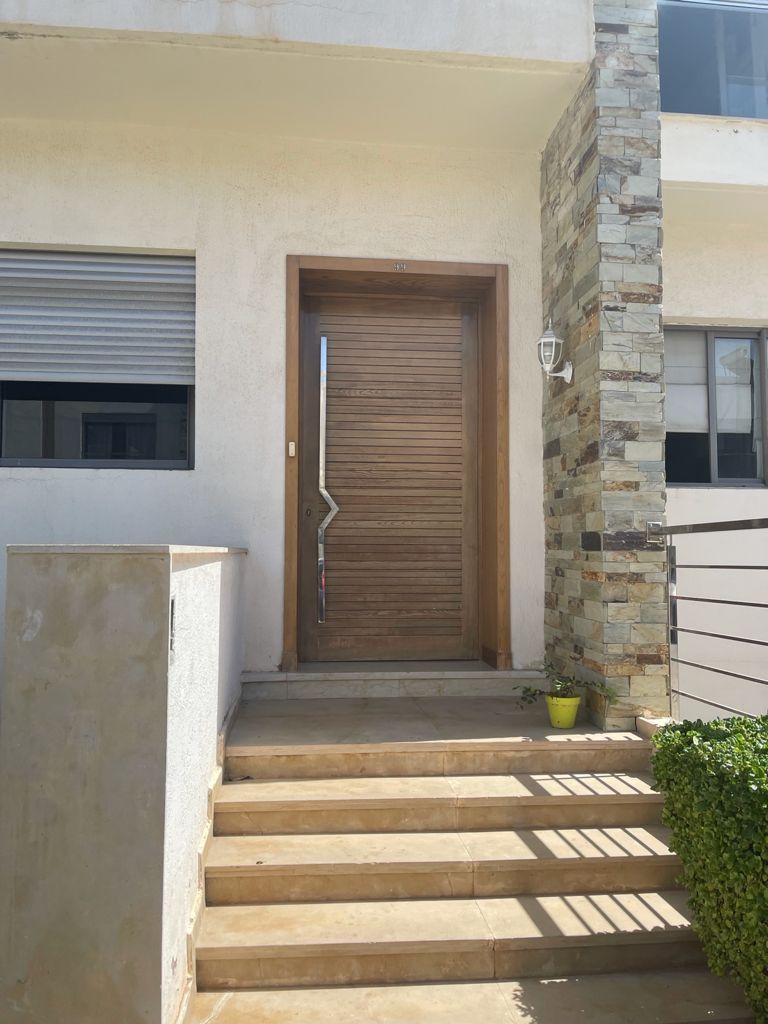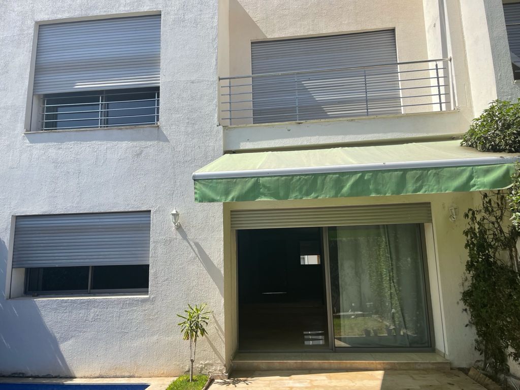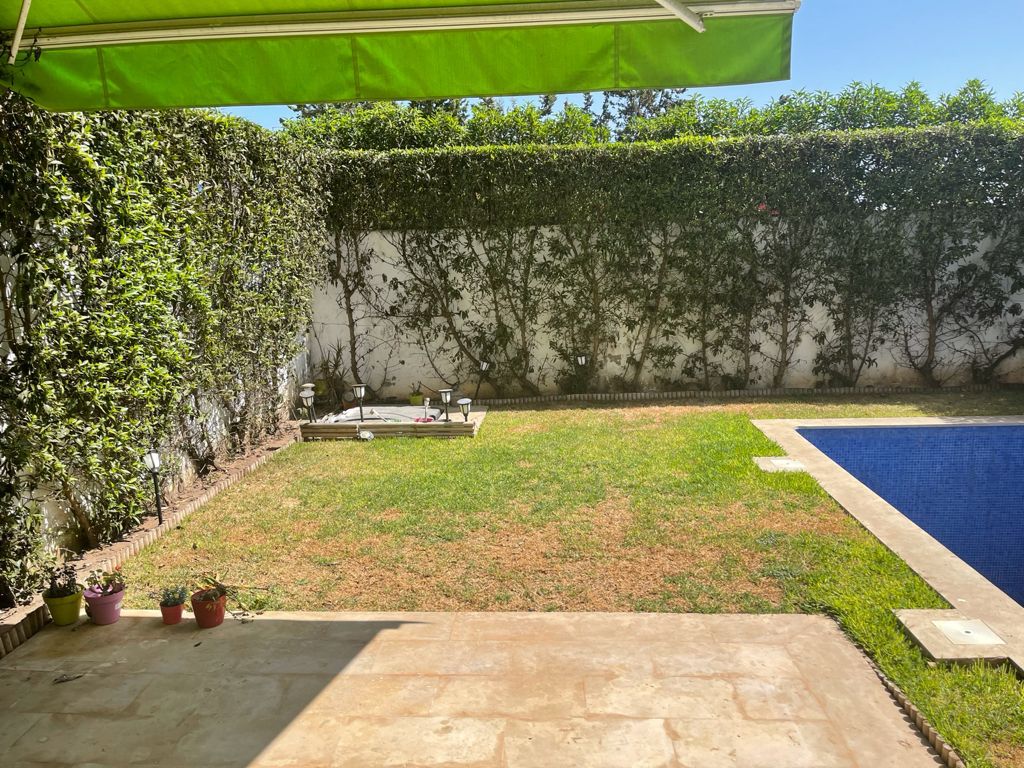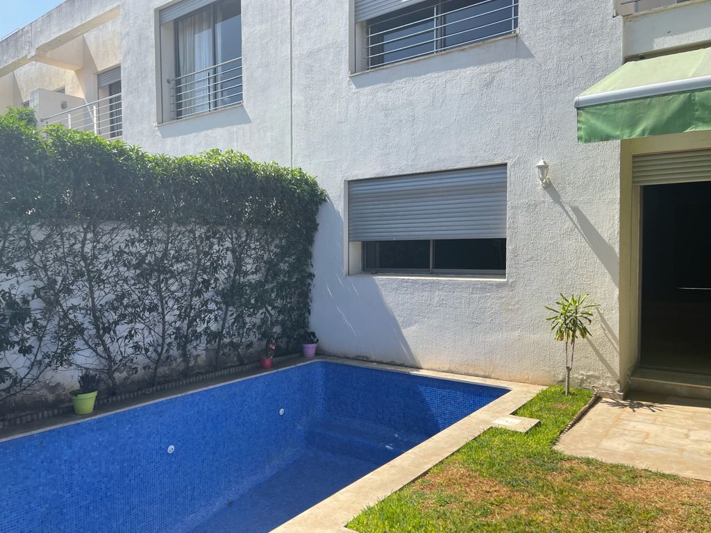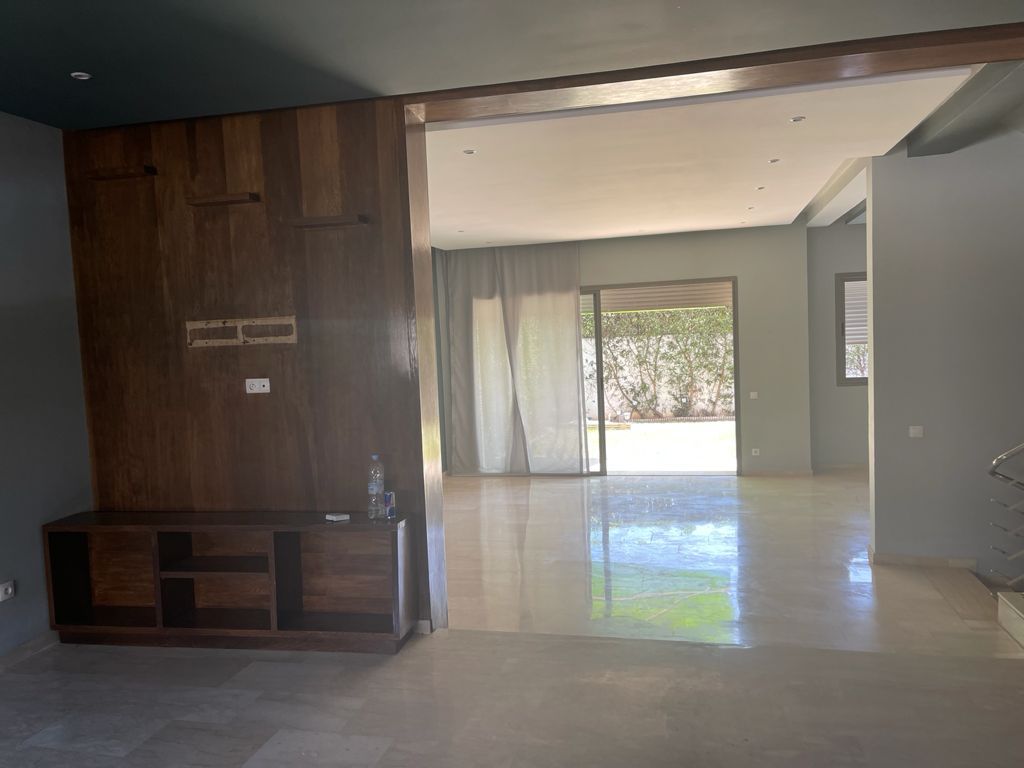 Villa-en-location-pas-cher-sur-Dar-Bouazza, d’une superficie terrain de 300m², construit 400m² sur trois niveaux, sise dans une résidence sécurisée 24/24 à Dar Bouazza, proche de toutes commodités (Marjane, Mrissa, Mercato….), comprenant au RDC : un triple salon avec coin cheminée, le tout donnant sur le jardin et la piscine, salle d’eau invités, une cuisine entièrement équipée, à l’étage : une suite parentale dont dressing et salle de bain avec cabine douche, suite junior dont placards et salle de bain avec douche, deux chambres à coucher avec placards, salle de bain avec baignoire, Sous-sol on y trouve un garage, chambre pour le personnel et ses sanitaires